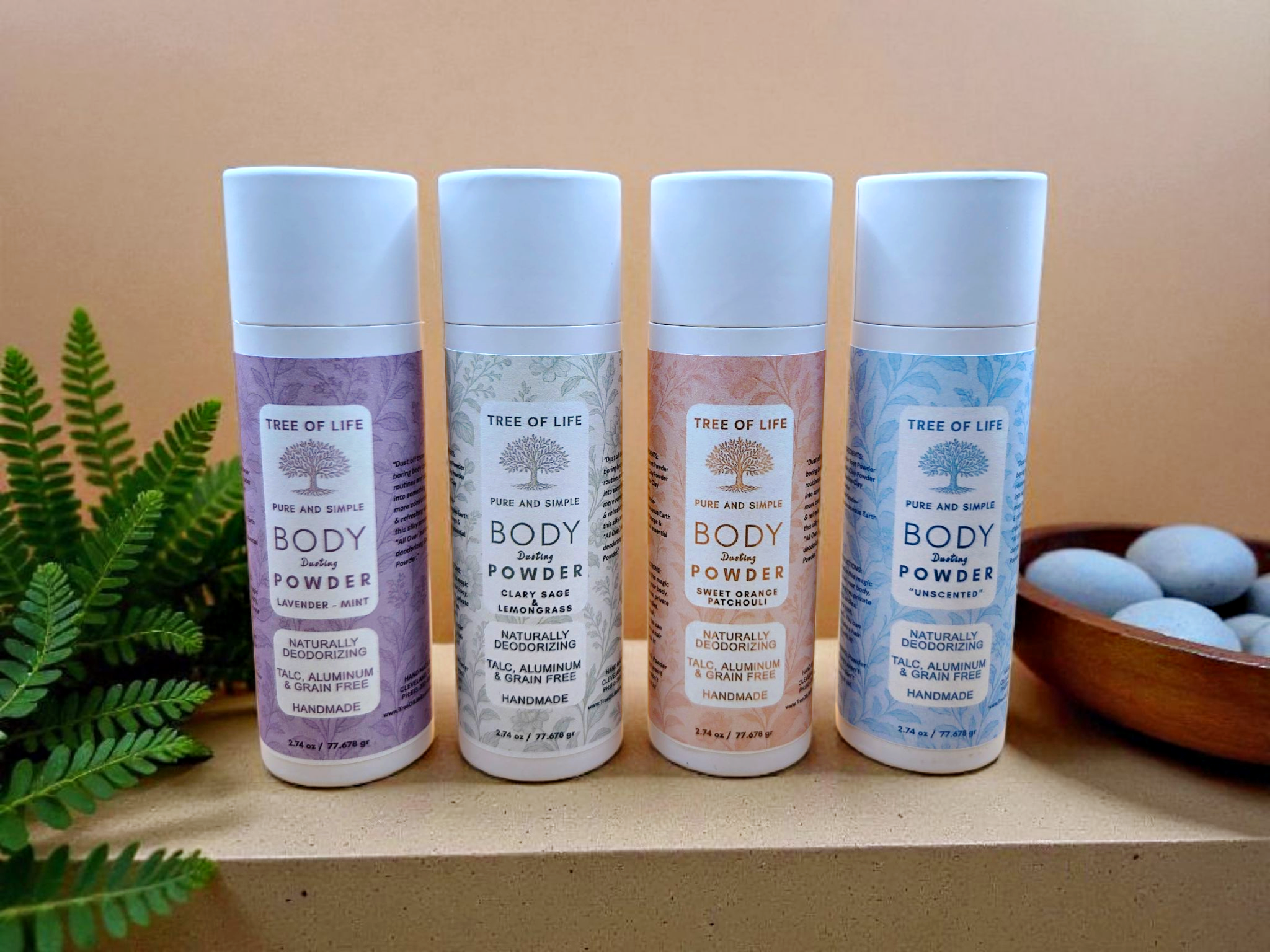 Ingredients: Arrow Root Powder, Kaolin Clay Powder, Calamine Clay Powder, Food Grade- Diatomaceous Earth, Essential oils